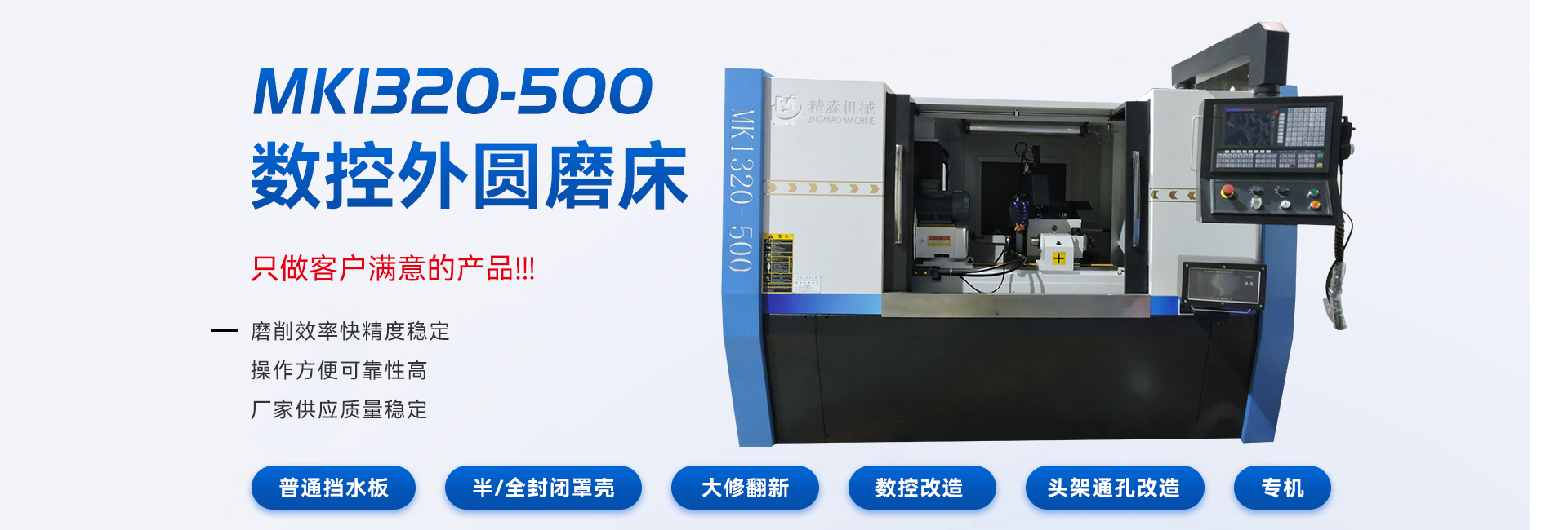 無錫市精淼機(jī)械科技有限公司是一家專業(yè)生產(chǎn)外圓磨床,無心磨床,內(nèi)圓磨床的整合型磨床生產(chǎn)廠家。公司坐落于"魚米之鄉(xiāng)";之稱的江蘇無錫,位于美麗富饒的長江金三角地區(qū)---江蘇省無錫市錫山區(qū),交通便利,環(huán)境優(yōu)美。 公司主要產(chǎn)品有:磨床,外圓磨床,萬能外圓磨床,數(shù)控外圓磨床,數(shù)控端面外圓磨床,高精度外圓磨床,無心磨床,內(nèi)圓磨床,功能部件等。產(chǎn)品廣泛應(yīng)用于航空、航天、軍工、汽車、船舶、能源、紡織、電子、軸承、冶金、機(jī)床工具、工程機(jī)械等行業(yè),在廣大用戶中享有盛譽。 無錫精淼機(jī)械科技有限公司一貫堅持“以人為本、以科技求發(fā)展、以質(zhì)量爭市場、以品牌創(chuàng)效益”的方針,嚴(yán)格奉行“誠信、守信”經(jīng)營理念。多年來我們不懈努力,開拓市場,始終堅持“質(zhì)量**,誠信優(yōu)先,服務(wù)保障”的原則,以一流的產(chǎn)品和精心的服務(wù)來滿足顧客的期望,保證客戶得到滿意的產(chǎn)品。 我公司一直秉持這品質(zhì)卓越、服務(wù)一流的理念,熱誠歡迎國內(nèi)外新老用戶誠摯合作,光臨指導(dǎo),洽談業(yè)務(wù)。